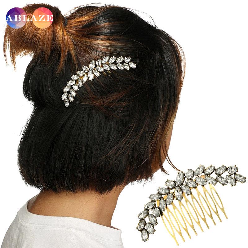 Ab Women Sweet Hair Comb Ornaments Shining Waterdrop Shape Beads Flower Handmade Bride Headdress